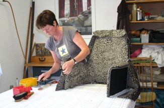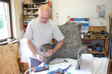 Der Chef - die Polsterung wird mit einzelnen Federn "geschnürt".